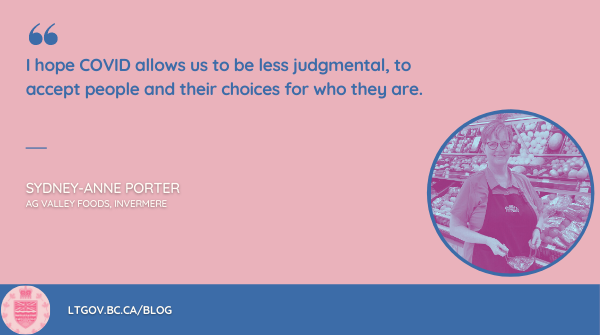 In honour of International Women’s Day, and in partnership with the BC Gender Equity Office, I’m sharing Women on the COVID Front Lines, profiles of women in British Columbia working to serve the needs of their communities through the pandemic.